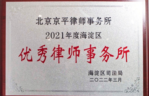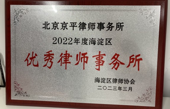 北京京平律師事務所榮獲2022年度海淀區“優(yōu)秀律師事務所”稱號
